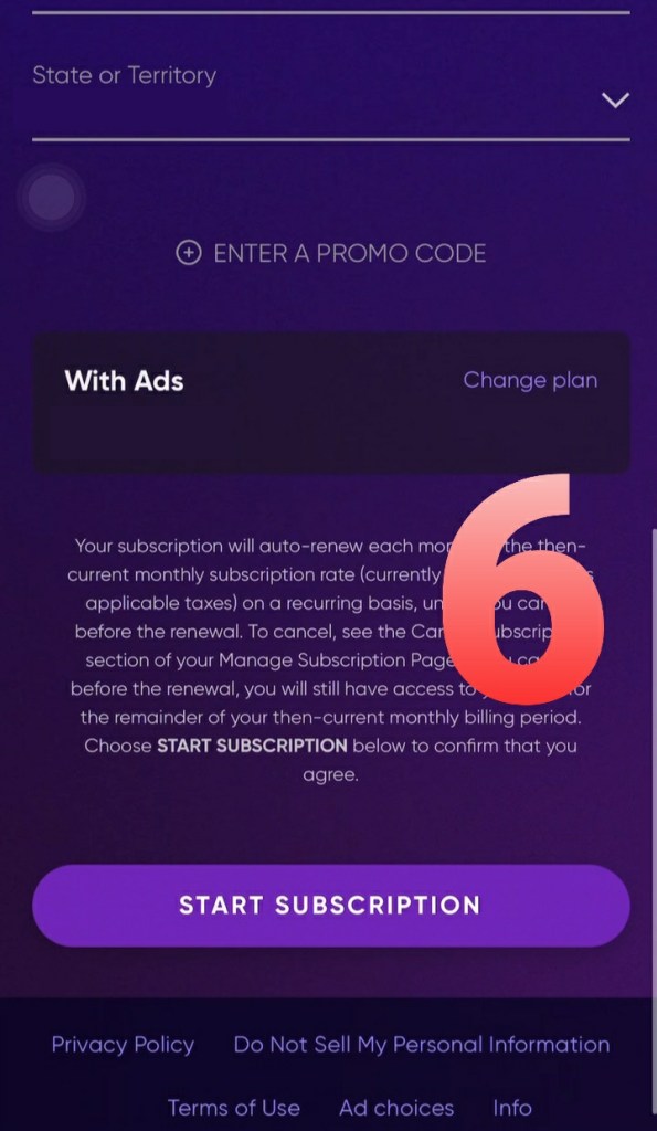 7. Le damos hacia abajo y le damos donas dice «START SUBSCRIPTION»