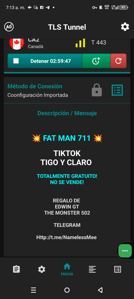 Les dejo servidor TLS Tunnel para el paquete de TikTok así no le pueden a los paquetes en Tigo y claro Guatemala. Agradecer con captura en la página The Monster 502 .