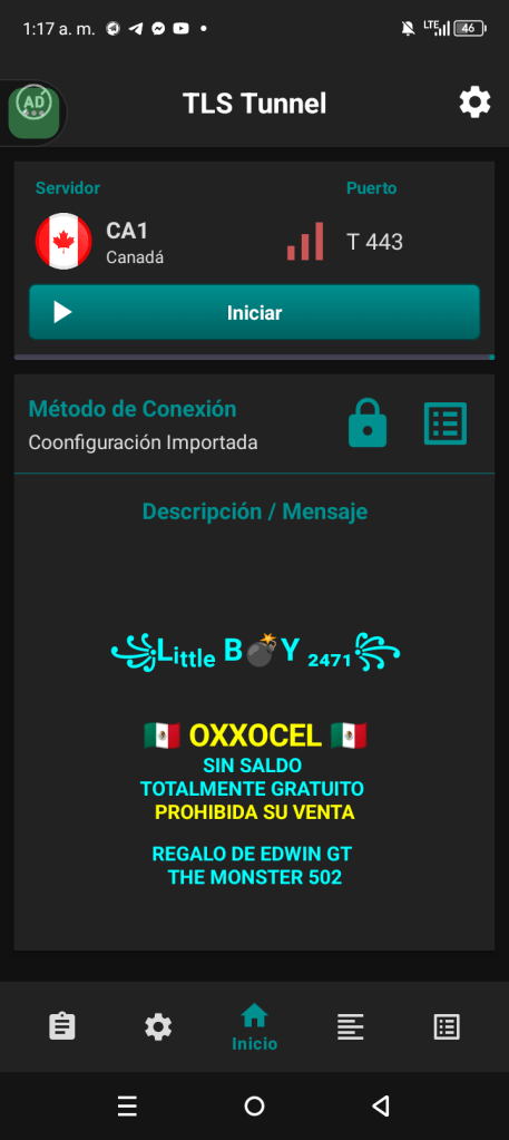 Les dejo servidor Oxxocel sin saldo, sin fecha de vencimiento. No más recuerda eliminar el .txt al nombre del servidor para poder importarlo a TLS Tunnel